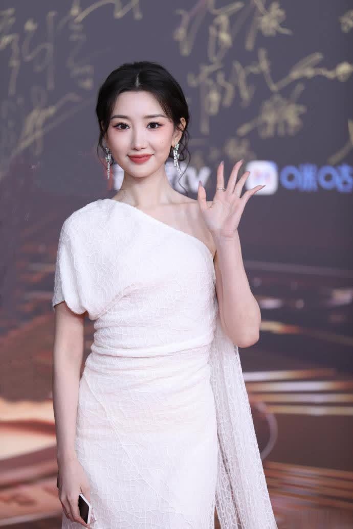 白鹿专门染了新发色,整个人更加元气满满,她选了一袭白色抹胸礼服,同时搭配了水晶发饰。造型很复古,不过并不太适合她的气质,抹胸的设计非但没能体现身材线条优势,反而把赘肉暴露出来。头上的发箍太抢戏了,和整体的造型显得格格不入,把个人的气场也压住了,看上去有些增龄。