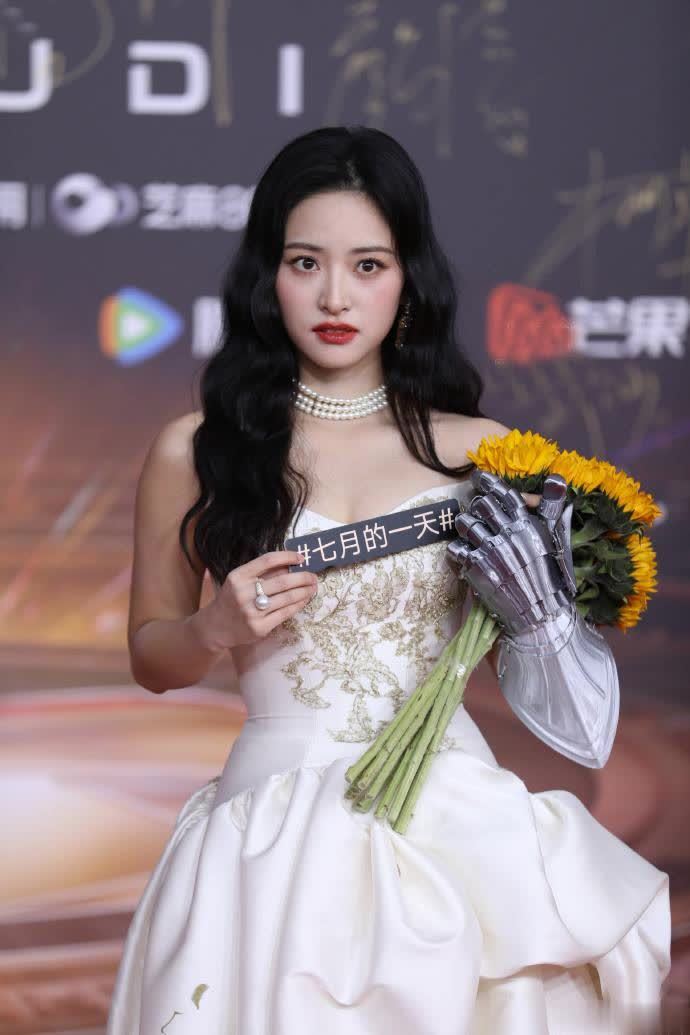 沈月也直接打破了以往的“甜妹”形象,从公主变成了骑士,一袭白色礼服搭配金色刺绣华丽又大气,珍珠项链的点缀也让她看上去优雅成熟,不过手中的向日葵显得比较随意了,破坏了造型的质感和美感。